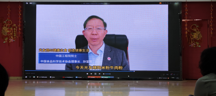 中國工程院院士、中國食品科學(xué)技術(shù)協(xié)會理事長孫寶國發(fā)來視頻祝賀《光友低GI健康主食 創(chuàng)造健康生活》:“2023年6月我和其他食品科學(xué)家一起應(yīng)邀到光友薯業(yè)參觀考察及成果評價,看見光友薯業(yè)32年專注薯類健康方便主食產(chǎn)業(yè),我們都很感動。光友薯類方便米粉是由鄒光友為課題負責(zé)人,研發(fā)完成國家十三五薯類方便主食中的一項重大成果,我多次組織技術(shù)成果評價,均評價為國際領(lǐng)先水平。今天,光友綿陽米粉牛肉米粉獲得低GI健康食品認證,并召開新聞發(fā)布會向全球推廣,這是食品行業(yè)的一大喜訊,向光友薯業(yè)表示祝賀!”。