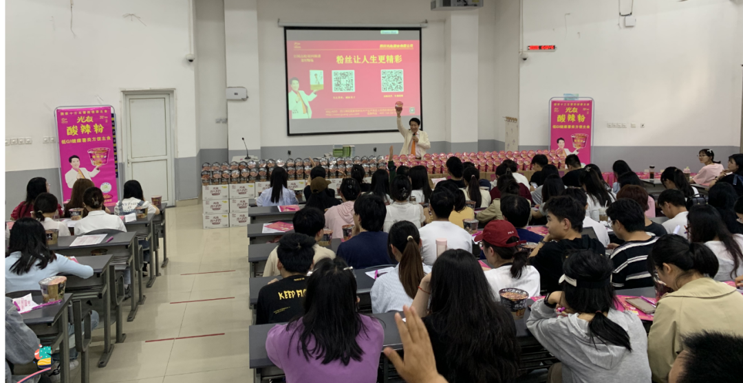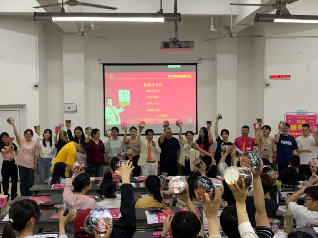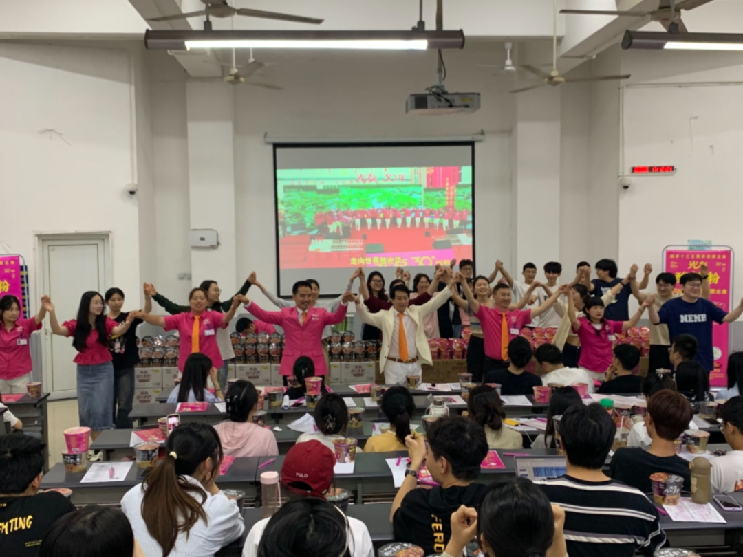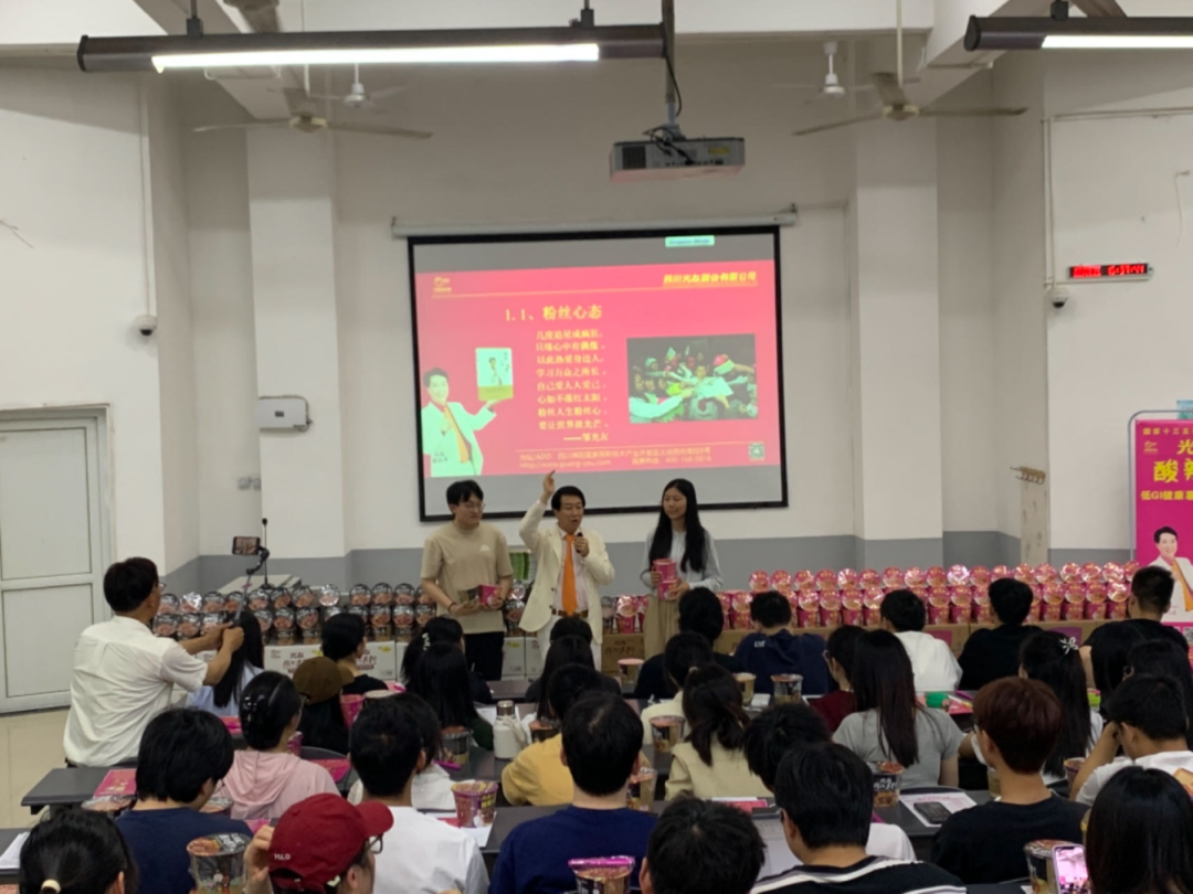 演講過(guò)程中,光友薯業(yè)董事長(zhǎng)強(qiáng)調(diào),他與光友薯業(yè)始終不忘初心,從未停止過(guò)改變紅薯命運(yùn)的偉大愿景,光友薯業(yè)在32年間,共進(jìn)行了六次具有歷史突破性的粉絲革命,先后斬獲國(guó)內(nèi)外多項(xiàng)榮譽(yù)與專利,并在不久前全新發(fā)明了全球領(lǐng)先的低GI健康薯類主食——光友綿陽(yáng)米粉和光友酸辣粉,科學(xué)健康和方便美味完美相融,該類粉絲一經(jīng)亮相,便立即受到了業(yè)內(nèi)外的認(rèn)可與追捧。現(xiàn)場(chǎng)同學(xué)食指大動(dòng),也對(duì)光友這個(gè)國(guó)貨老品牌有了全新的認(rèn)知。