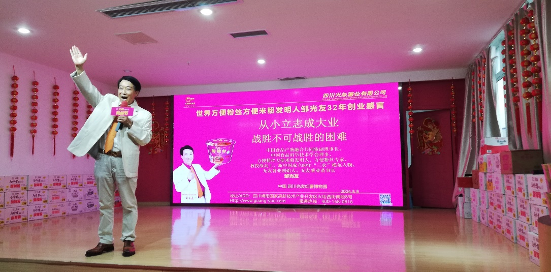 活動(dòng)前預(yù)熱環(huán)節(jié),一段活力四射的光友粉絲舞視頻讓現(xiàn)場氣氛瞬間升溫。隨后,方便粉絲方便米粉發(fā)明人、光友薯業(yè)集團(tuán)董事長鄒光友發(fā)表熱情洋溢的歡迎辭,并深情分享《從小立志成大業(yè) 戰(zhàn)勝不可戰(zhàn)勝的困難》的感言,鼓勵(lì)小記者們勇于面對(duì)挑戰(zhàn)面對(duì)困難,追求夢想。在互動(dòng)環(huán)節(jié),小記者們積極提問,鄒董事長一一耐心解答,并親手為提問的小記者們贈(zèng)送《光友詩選》,每本書上都附有鄒董事長親筆簽名及溫馨寄語,傳遞著對(duì)下一代的殷切期望。