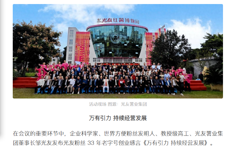 第三屆粉絲論壇 健康粉絲峰會在中國光友紅薯博物園召開